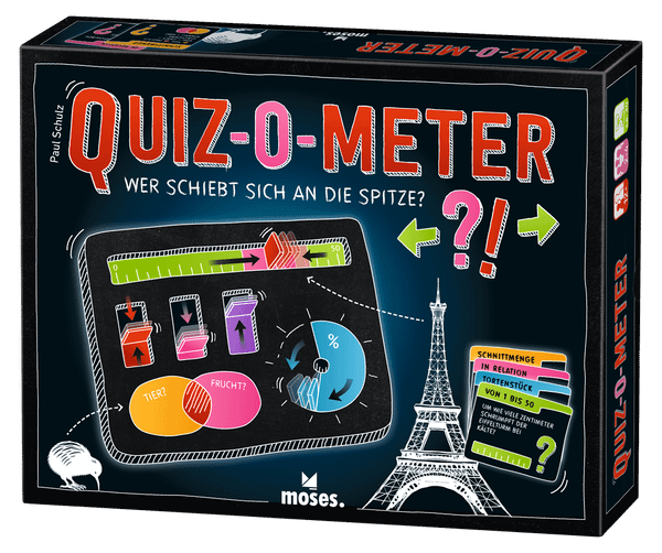 With 240 diverse questions and clever answer boards, QUIZ-O-METER brings fresh excitement to the game table. In four thrilling rounds packed with surprises, strategy and intuition, players must estimate answers, outsmart their opponents, and hit as close to the mark as possible.