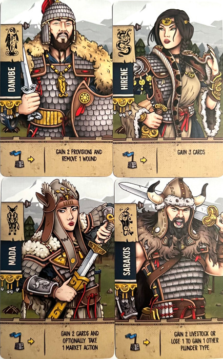 Sarakos: Gain 2 Livestock or lose 1 to gain 1 other Plunder type