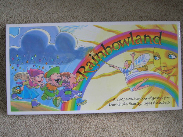 Players work together collecting colored raindrops in their buckets to build a new rainbow in Rainbowland. Then they flip the gold coin to see if they can keep the gold at the end of their rainbow.