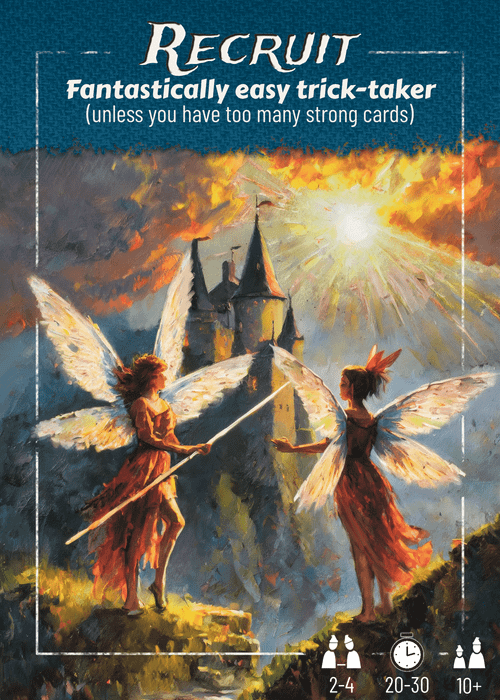 You're recruiting for an epic quest but must avoid having redundant leaders on the team. You'll score points by collecting cards during this trick-taking game but will lose points for collecting duplicate face cards (Jack / Queen / King).