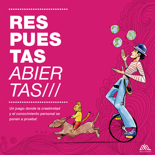 In Respuestas Abiertas (Open answers), players must move on the board and taking cards of two different types: