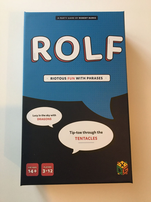 Rolf is a stunningly simple party game that includes a plethora of phrase cards. On the back of each card are two unfinished phrases. On the front of each card is the word that finishes the phrases, and the first letter of this word.