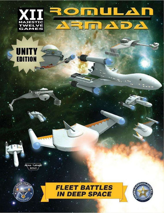 A meeting of empires as a famous game system joins the Star Fleet Universe. Romulan Armada was done as a joint venture between Amarillo Design Bureau and Majestic Twelve Games. This 84-page rulebook includes the Essential Starmada Rules, 37 starships (Romulan, Federation, and Gorn) and eight bases (Romulan, Gorn, Federation, Klingon, Kzinti, and Tholian), and complete rules to bring the Star Fleet Universe alive in the Starmada game system.