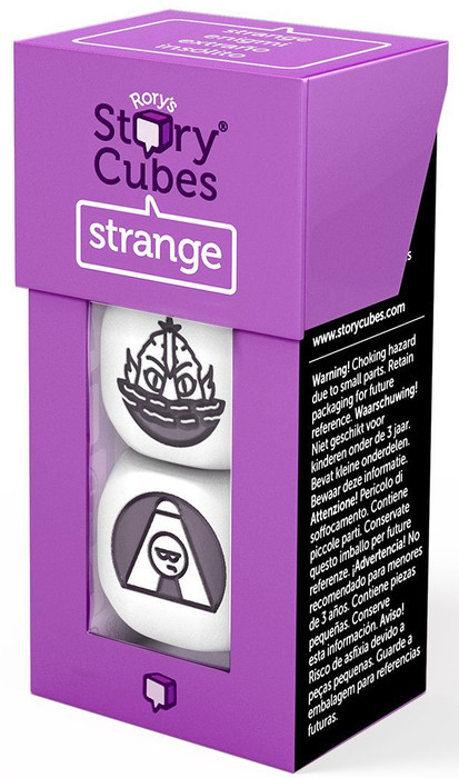 Rory's Story Cubes: Strange is an expansion to the creativity game Rory's Story Cubes that contains three new dice with 18 thematic actions. It can be played on its own or in combination with any or all of the other Story Cubes titles.