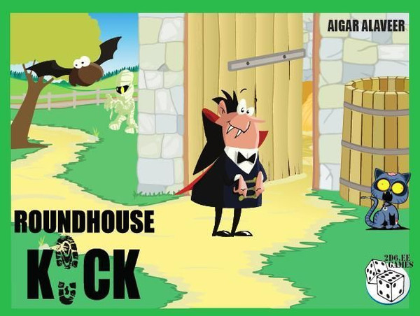 In Roundhouse Kick, each player is an escaped prisoner who must fight several monsters in an abandoned barn. In each round all players roll the dice and try to kill as many monsters as they can because the monsters are worth points. After the players attack, though, the monsters fight back. The game ends once all the monsters or all the players are dead.