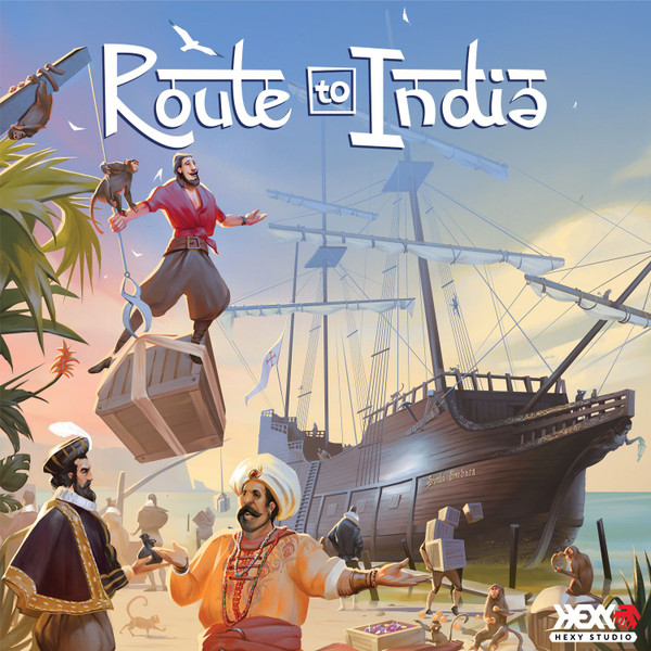 Route to India is a family friendly game (which also has an advanced version of the rules) for 2-4 players in which the participants embark on a journey to India and back. The gameplay is divided into two phases, composed of a number of turns which the players take. In the first phase your ships leave from the port of Rastello. Sailing along, you will be moving your ships to the selected ports or colonies (different types of spaces on the board), purchasing goods for doubloons and placing them in the cargo holds (player boards). During your turn you can take move and trade actions, and each cargo tile you obtain is worth a specific number of points at the end of the game. The last ship that arrives at the port in India starts the second phase, beginning the journey back (with new goods available). The game goes on until all the players’ ships reach Rastello again, then you count the points and the player with the highest score is the winner.