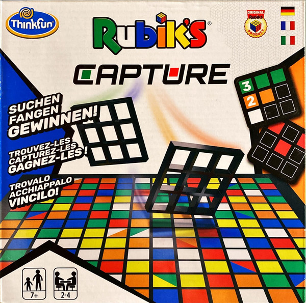 Rubik’s Capture is a high intensity board game designed to get your brain and fingers racing at a fast pace. To play, start by searching the colorful gameboard. Find the colors and patterns. Then, capture it with your grid to win. The capture cards show colors and patterns. Flip the cards one at a time and then, it's a race to find the match on the gameboard! It sounds easy enough, but Rubik’s Capture is a board game of skill, speed, and dexterity. Every card has at least one match on both sides of the gameboard- the challenge is finding them! Make sure you find it fast and find it first.