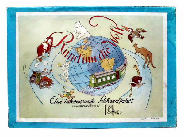 The player wo rolls highest begins and choses a continent to travel (green track). Every player has to chose another continent. Movement is determinated by a die. After completing their continental journey the players go to Berlin to start their race around the world (red track). The first player to return to Berlin wins the game. At some cities certain events hinder or benefit the players.