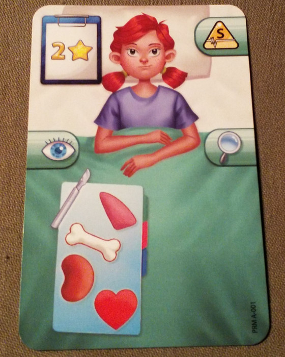 It's a red patient that requires an operation and needs as well a kidney, heart, bone and lung. She will grant you 2 VP when you succeed.