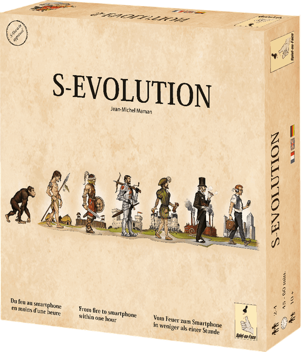 S-Evolution is a unique combination of a classic card game — with tricks, colors and trump — and of a typical "Eurogame" of resources management and civilization. Each player has a deck of 24 cards, and in each of the six rounds, he draws a hand of four cards from this deck. Each player starts the game in Age 1 and adds the progress card of this age to his deck.
