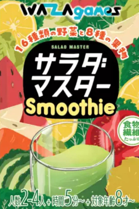 Salad Master Smoothie is a board game that allows modern individuals facing a vegetable deficiency to easily consume vegetables. Building on the previous game, "Sarada Master," it includes carefully selected vegetables.