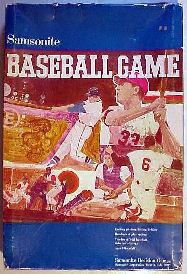 Another game offering from the luggage company, Samsonite. In this work, a custom card deck drives the baseball action between the two players. Runners advance and score as per standard baseball rules.