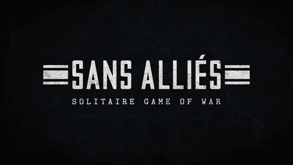 Sans Alliés (French: “without allies”) is a solitaire card game where you command 20th century troops and technology, pushing through an enemy nation bent on developing a vile super-weapon. Sans Alliés takes the feel of a grand-strategy, area-movement war game and compresses it into a tight little solo package, playable in about an hour.