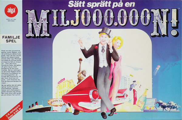 Sätt sprätt på en miljon, styled on covers as "Sätt sprätt på en milj000.000n", was produced in-house by Swedish Alga with the same theme and overall structure as Go For Broke: players are heirs tasked with quickly spending (within arbitrary limits) a small portion of a heritage, hoping to win the remainder.