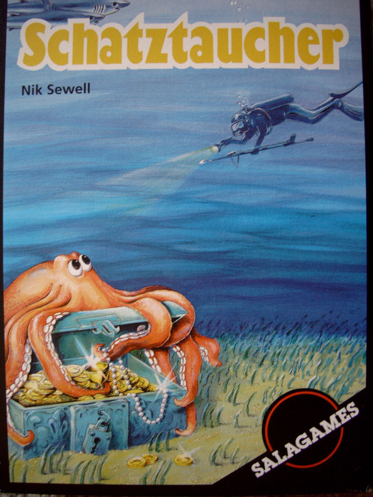Players make progressively deeper dives into the ocean waters (eight levels on the game board), gathering gold coins and stockpiling the necessary spears/harpoons that eventually allow one player to fight off the sharks and giant octopi at the ocean floor and bring a treasure chest back to the surface to win the game.