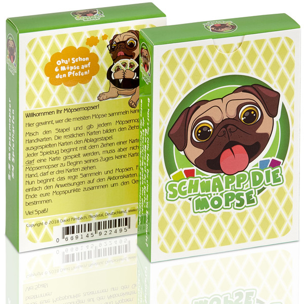 In diesem witzigen Kartenspiel wirst du zum Möpsemopser, sammelst und mopst so viele der niedlichen kleinen Vierbeiner, wie du kannst.