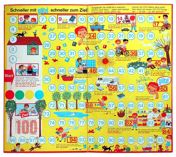 The players start at space 1. The first to reach space 100 wins the game. Movement is determined by a die. On some spaces events hinder or benefit the players.