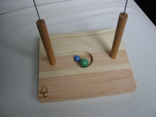 Swinging Marbles has players trying to getting small marbles from one cup to another. The cups are on lengths of wire, 80cm lengths! Plug the wires into the base board and try to swing the marbles from one cup to another. It does what it says on the tin!