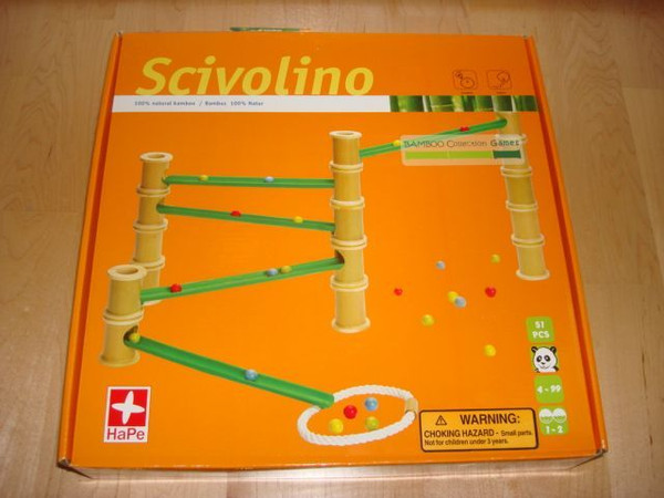 A marble run game in the Bamboo Colleection from HaPe Games. Players build the run and then race marbles through it.