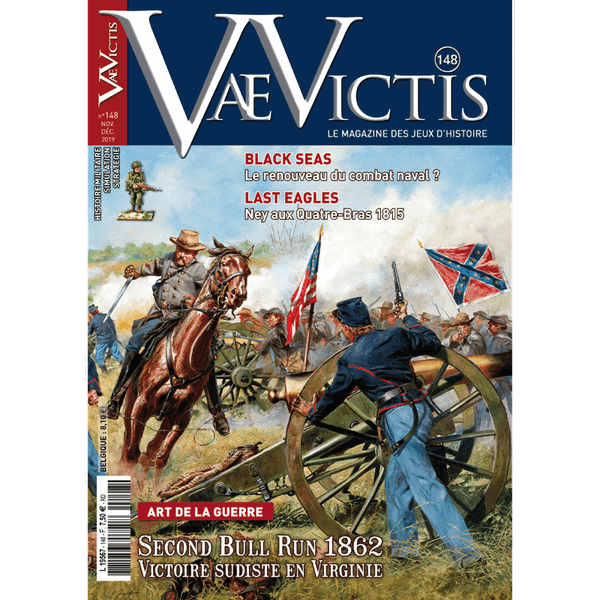"Second Bull Run 1862" is an American Civil War board wargame for two players that simulates the main battle of the "Northern Virginia Campaign" during the summer of 1862 between General Lee for the South and General Pope for the North. Despite being outnumbered, Lee wins the 3-day combat and takes advantage of his good defensive position before launching a counter attack that disperses Pope’s troops. This simulation primarily uses the rules of the Sécession System (Vae Victis - American Civil War series) developed for Cedar Creek 1864 (VV94) and especially Stones River 1862 (VV121).