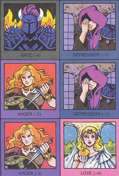 The game is basically a rummy-like game where some of the cards have special powers. Cards are melded to the table either in front of the person who played it or in front of an opponent. Each card has a specific number of points... either positive or negative (range -4 to +4).