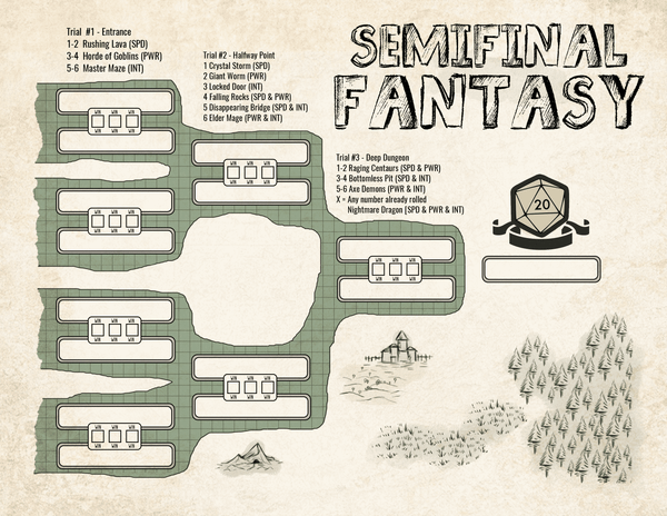 It's time for Semifinal Fantasy, where you (the average townsfolk) get to go down to your local tavern, pick your favorite adventurers, and place bets on which party will survive the nasty Bracket Dungeon!