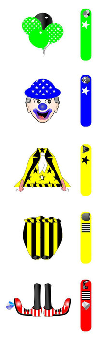 'Send in the Clowns' is a quick-playing card management game in which you take on the role of a circus impresario. Your troupe of clowns have entered the Best Dressed Clown competition and are trying to assemble costumes (made up of four garments - hats, shirts, trousers, and shoes) that match in colour (red, yellow, green, blue, purple, or pink) and pattern (stripes, checks, spirals, or stars).