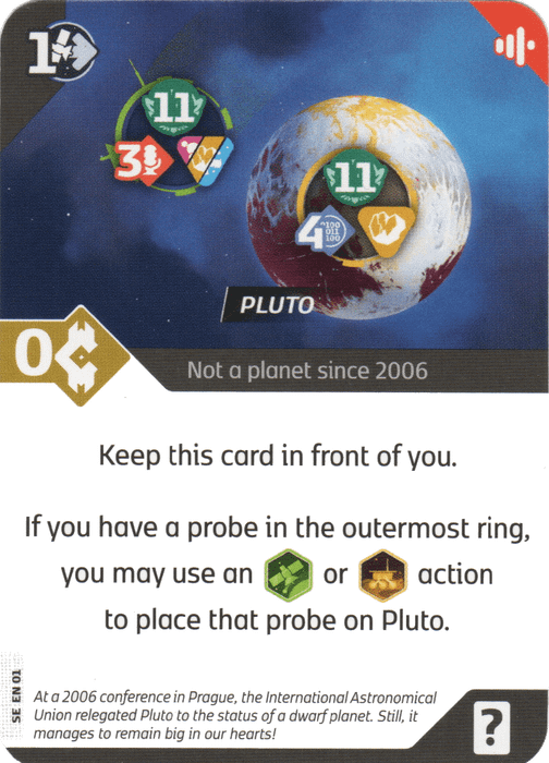 A promo card representing Pluto. It reads: