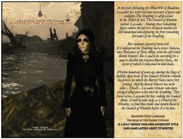 Revenge of the Raven Consort is the 3rd game in the Lassadar Trilogy (Shadows Upon Lassadar and Sorrow of Salilth are the other 2).