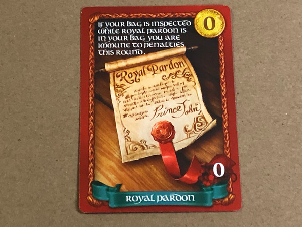 Royal Pardon: If your bag is inspected while Royal Pardon is in your bag, you are immune to penalties this round.