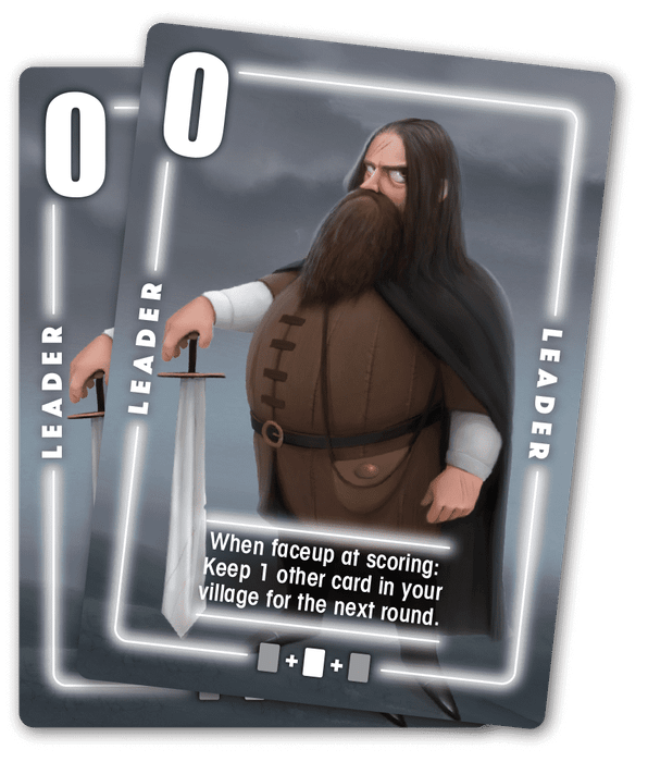 If you have a Leader faceup at scoring, save one other card in your village for the next round.