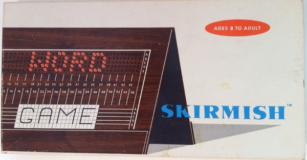 This game could be described as Battleship with words. The board is a bi-fold, with a ribbon connecting the two sides to provide support for tenting on a table. Each side of the board has two areas - the lower portion contains a thin ledge on which to place the letter tiles and a coordinate system. The upper portion has the coordinates as well as holes which can be filled with either light or dark pegs, depending on on the result of a query. The letter tiles, which come in two shades, are imprinted on a quadrille rule themselves, for better alignment with the coordinate system.