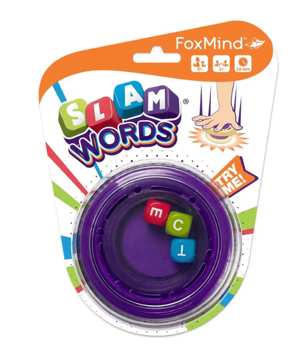 Slam Words is the fastest word search game ever. Shake the cup, then slam it shut to lock in the dice and reveal three letters. Quickly find a word that uses these three letters, then pass the cup to the next player, who has to find a new word — or they are out.