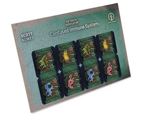 The Confused Immune System is a small mini-expansion, similar in size to Dyspepto-Beastmol. It emulates how an immune system, while necessary to one's health, can overreact and become a burden.