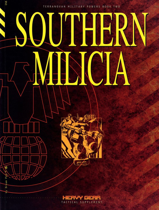 The Southern MILICIA Army List provides Heavy Gear tactical Players with all the information they need to run battles featuring the MILICIA and to buid their own MILICIA units. Southern land forces are covered in detail along with guidelines for building miniature armies, new tactical abilities for special units and some historical background on the MILICIA.