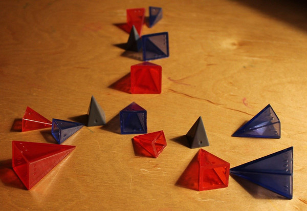 Space Mines is a game playable with Looney Pyramids -- one stash per player plus a few extras in a new color to be asteroids.
