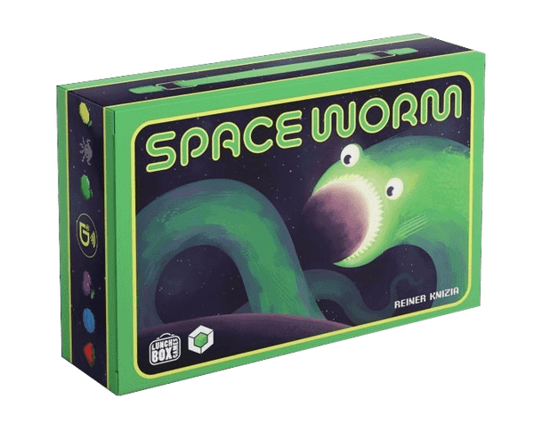 In the roll-and-write, route-building game Space Worm, 2-6 players navigate the fruity void of space with their leviathan cosmic serpents, eating planets whole and collecting space fruit along the way.