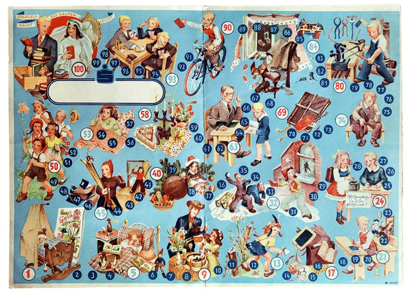 The players take turns to roll and move. On some spaces events hinder or benefit the players. The first to reach space 100 wins the game.