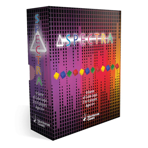 Spectra is a game for two to four players that employs the same type of logic as the game of Nim. Placing cubes on the board, players hope to end each round with a majority of cubes on as many spaces as possible, thus scoring points. But the order of play and distribution of cubes can have millions of potential combinations. It’s a bit of a brain-teaser, but easy enough so that players of any age (above 8) will have fun working out a strategy. The small format makes Spectra a good choice to take on vacation or family outings!