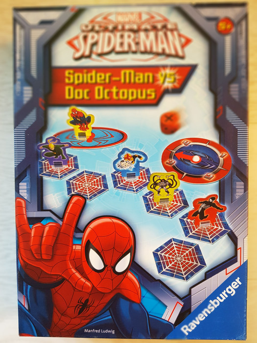 Spider-Man vs Doc Octopus is a roll-and-move game where the players each have to reach the finish before Doc Octopus does. Each turn, a player decides how often they want to roll the die (up to four times). However, if they roll an "X" in any of their attempts, they do not get to move. Instead, Doc Octopus advances a number of squares equal to the number chosen at the beginning of the turn.