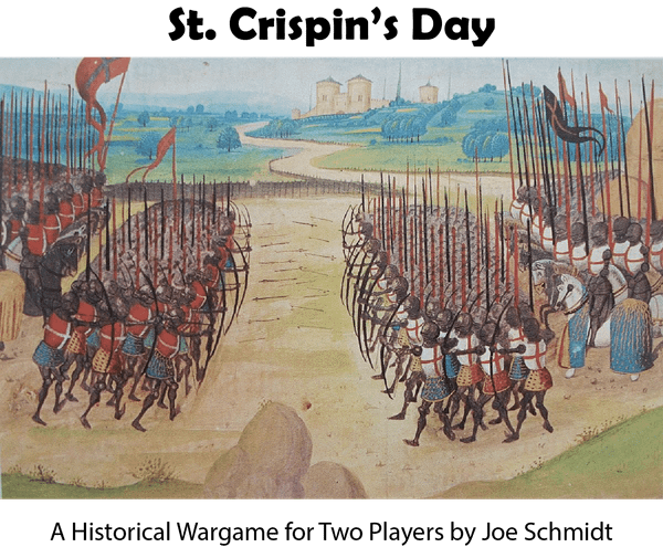 St. Crispin's Day is a simple print-and play hex and counter wargame meant to simulate the famous Battle of Agincourt. Victory will either be won or lost thanks to strategic movement and attacks of your units on the field of battle. While the French attack takes place in waves, the English player must survive the onslaught.