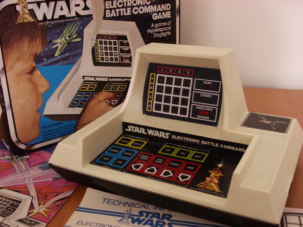 Star Wars Electronic Battle Command Game was a space exploration game that you could play by yourself or against 3 other players. The screen was an LED grid which showed coordinates. You could 'zoom' in on a coordinate to get a closer look at a star system, or come across other player's ships.