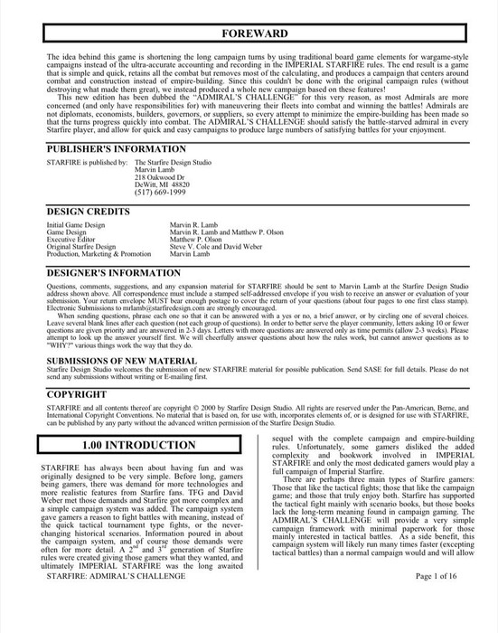 Admiral’s Challenge is a simplified (15-20 page) campaign rule set for people who don’t want to use the full campaign rules for Third Edition. It removes the bulk of the campaign related paperwork and also moves to a grid based campaign map to allow for more open movement (and fewer choke points) than the standard rules so that the focus of the campaign can be on combat rather than management.
