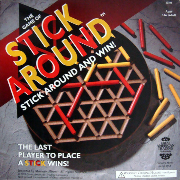 Each player has thirteen sticks, and takes a turn laying a stick touching any other stick of his color along the sides of the inscribed triangles. Shares parentage with Twixt, Hex and the Game of Y but not as complex.