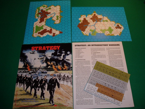 "Strategy postulates a military conflict between two neighboring island nations. On each island there are a number of cities, airfields, and ports, linked together by a road net, and coastlines covered by radar (the technology is approximately that available during World War II)."