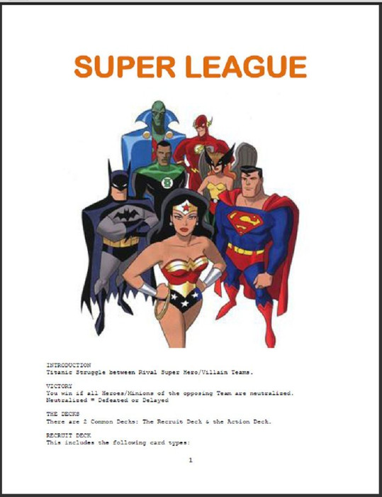 The game uses two decks of cards - the Recruit Deck and the Action Deck. The Recruit Deck contains Heroes/Villains, Minions, Aids, Plots, and Upgrades Cards. The Action Deck contains Events and Battle Cards. Six-sided dice are also required for play.
