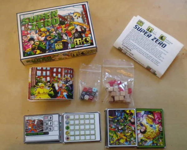 Each player begins as an inexperienced vigilante with barely enough crime fighting skill to take on even the most inept villain. On each turn, players divide their time between training their hero, fighting crimes, and reverse-engineering villain technology to use as their own.
