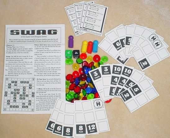 Swag is a free game that was given away at GenCon 2002. For an additional $5, you could purchase the "Swag Bag" which included all of the components necessary to play.