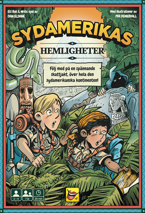 Sydamerikas Hemligheter is an exciting and unique roll & write game where you embark on a journey throughout South America to discover clues leading to valuable missing objects. In the frantic pursuit, you traverse the terrain using a jeep, boat, and airplane, requiring strategic planning of your route for the best possible outcome. The player who first locates the missing objects and reaches their destination city wins the game!