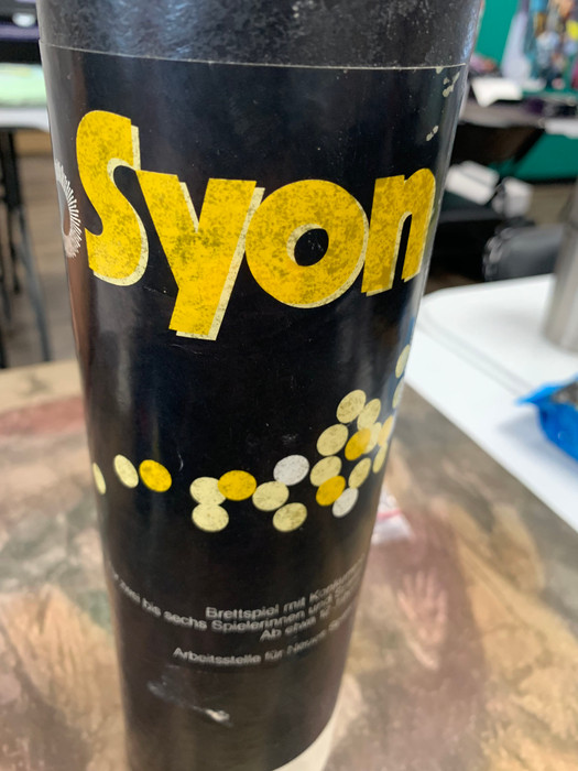 The object of this abstract strategy game is to bring together 4 sun pieces (2 each of 2 different colors) into a connected chain. Each player has a hidden goal card with his 2 colors. This means that many times two players have a color in common, making it a challenge to help yourself without helping your opponent even more.